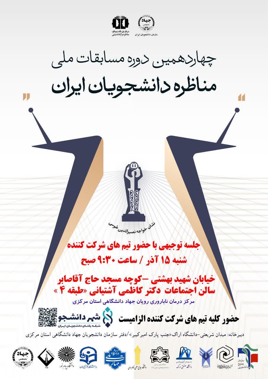 15 آذر؛ برگزاری نشست توجیهی چهاردهمین دوره مسابقات ملی مناظره دانشجویی در جهاددانشگاهی استان مرکزی