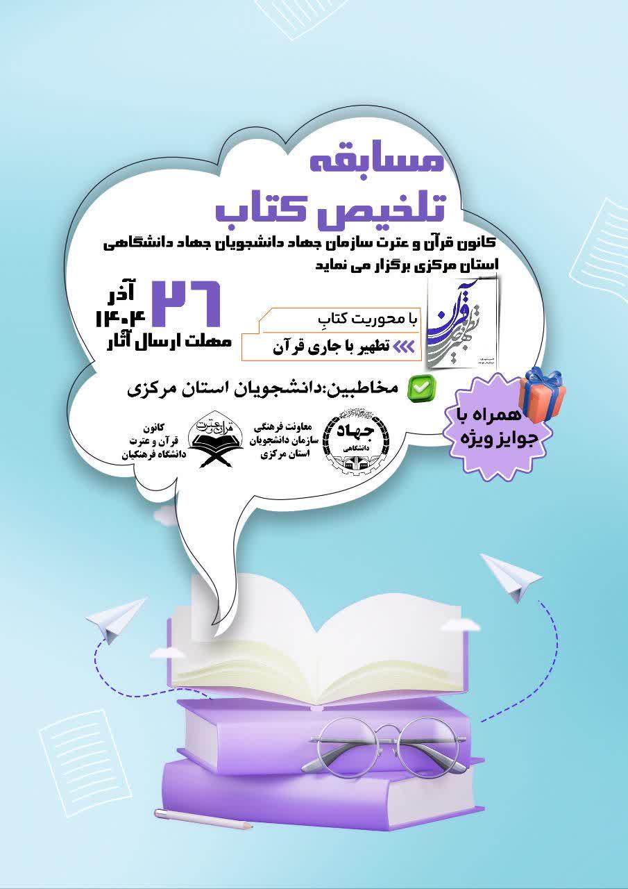 برگزاری مسابقه تلخیص کتاب "تطهیر با جاری قرآن" در استان مرکزی