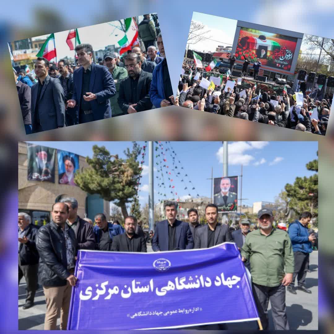 در این مراسم، رئیس، مدیران و اعضای جهاد دانشگاهی استان مرکزی در کنار اقشار مختلف مردم، مسئولان و خانوادههای معظم شهدا حضور یافتند و با گرامیداشت یاد و خاطره رهبر شهید انقلاب، بر تداوم راه شهدا و پاسداری از ارزشهای انقلاب اسلامی تأکید کردند.